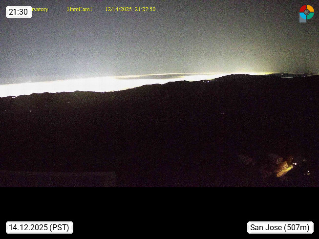 San Jose 6m, seat of the administration department of Santa Clara County at the southern ending of San Francisco Bay and belongs to the high tech area of Silicon Valley at the hillsides of Diablo Range with Mount Hamilton 1.327m. Panoramic view in west direction over the city. Presented by https://mthamilton.ucolick.org.