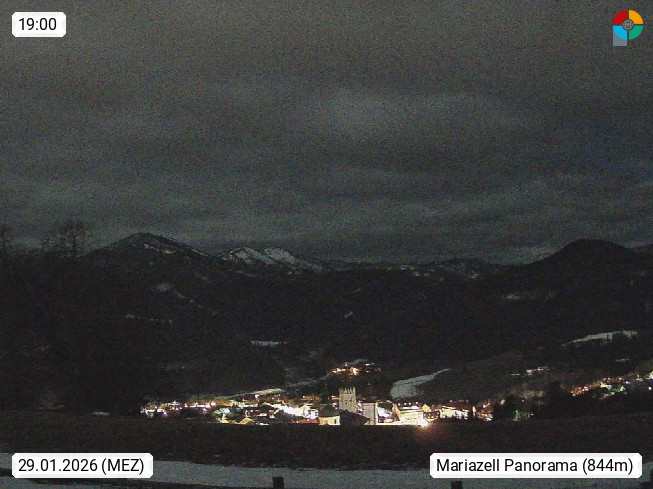 A 8630 Mariazell 868m, Austrias most important place of pilgrimage, which is located in the northern Upper Styria region in district Bruck at Mur. Panoramic view from the public observatory1.008m, in west direction to the steeples of the Basilica over Salzatal valley to Mount Zellerhut 1.689m and Duernstein village. Presented by http://www.sbm-web.at.