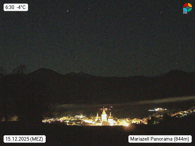 A 8630 Mariazell 868m, Austrias most important place of pilgrimage, which is located in the northern Upper Styria region in district Bruck at Mur. Panoramic view from the public observatory1.008m, in west direction to the steeples of the Basilica over Salzatal valley to Mount Zellerhut 1.689m and Duernstein village. Presented by http://www.sbm-web.at.