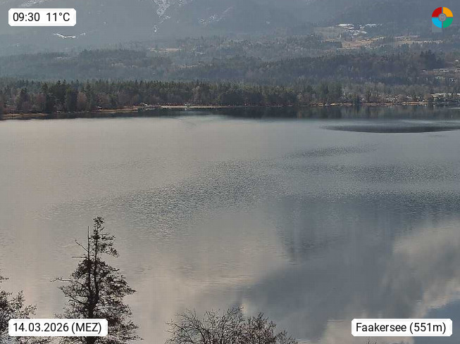 A 9580 Lake Faakersee, panoramic view in southwest direction over Lake Faakersee 554m. In the background are the Karawanken Mountains with Mount Mittagskogel 2.143m. Presented by https://www.visitvillach.at/.