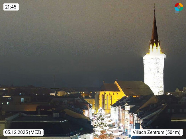 A 9500 Villach 501m, view to the old town with the main square and the parish church of the town, the Church Sankt Jakob in the old town. Presented by https://www.visitvillach.at/.