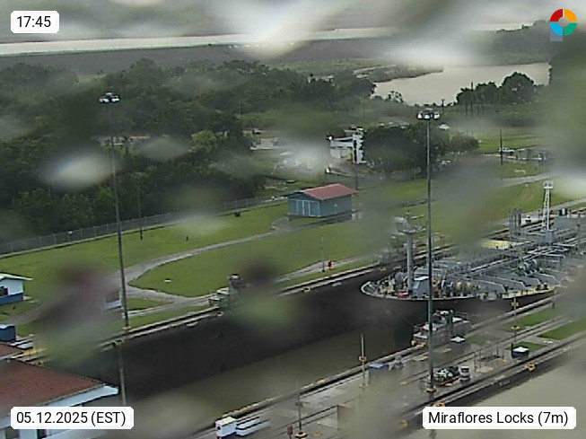 Panama Canal, panoramic view to the floodgate construction Miraflores Locks. Presented by https://www.pancanal.com.