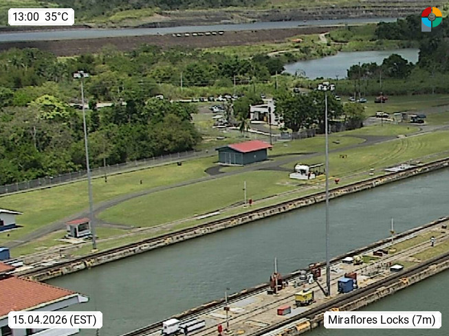 Panama Canal, panoramic view to the floodgate construction Miraflores Locks. Presented by https://www.pancanal.com.