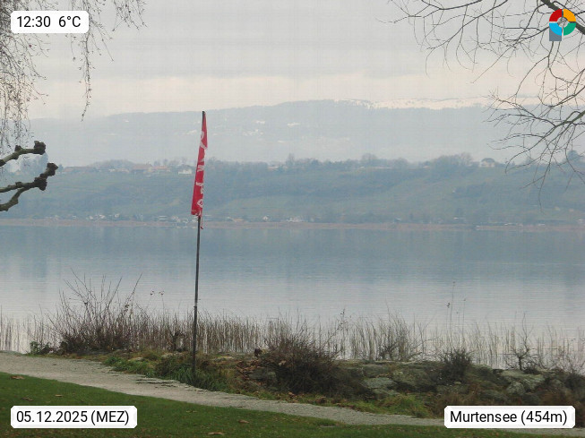 CH 3280 Murten, panoramic view in south direction over Lake Murtensee (Lac de Morat) 22,8km². Presented by https://www.bisenoire.ch.