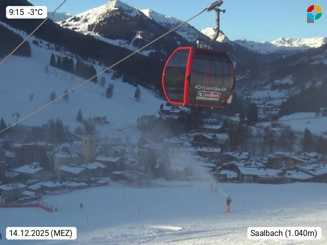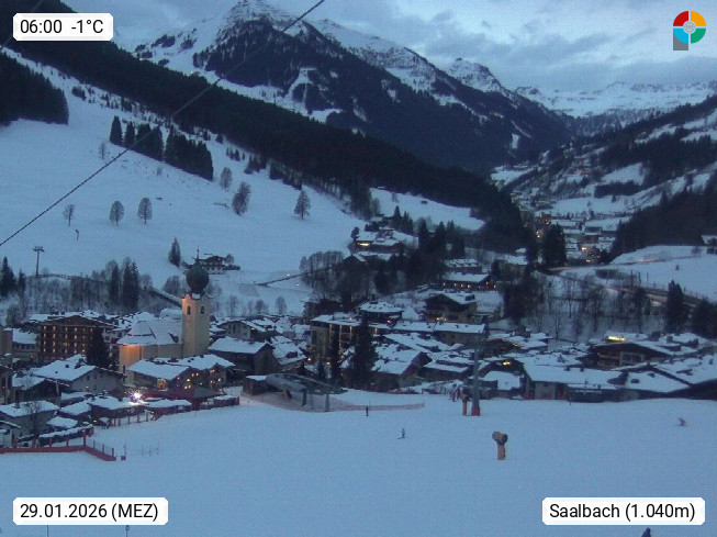 A 5753 Saalbach Hinterglemm 1040m, Holidayresort in the region Pinzgau in the valley of the river Saalach, wich runs from west to east and belongs to the region of the Kitzbuehler Alps. Changing panorama pictures from west to north over the village. Presented by https://www.saalbach.com/.
