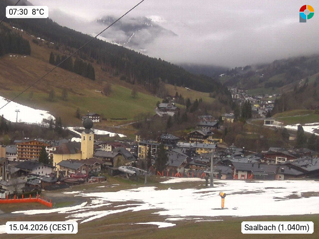 A 5753 Saalbach Hinterglemm 1040m, Holidayresort in the region Pinzgau in the valley of the river Saalach, wich runs from west to east and belongs to the region of the Kitzbuehler Alps. Changing panorama pictures from west to north over the village. Presented by https://www.saalbach.com/.