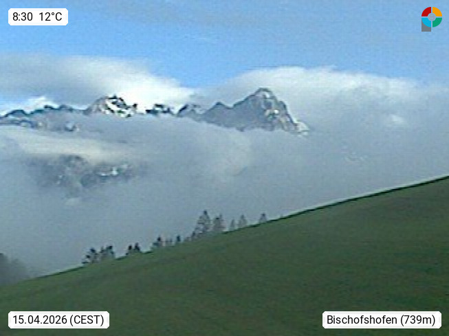 A 5500 Bischofshofen, panoramic view from the village district Kreuzberg 740m in north direction over Mount Buchberg to the Tennengebirge Mountains. Presented by https://www.pongau.info/.