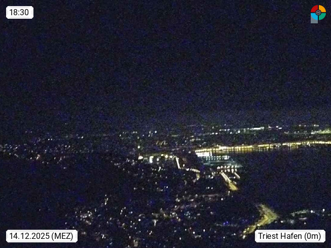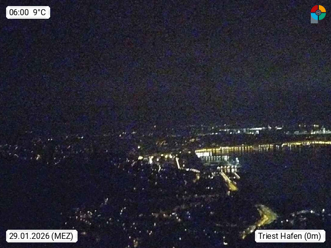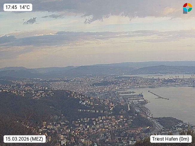 I 34100 Trieste, (slov. Trst) 4m, panoramic view in south direction over the harbour and the city. Presented by http://www.cisartrieste.it.