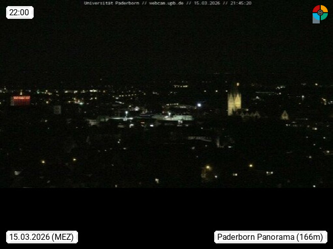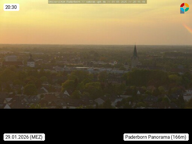 D 33098 Paderborn 110m, County seat and center of the region Hochstift Paderborn on the Pader river wich is with 4 km length the shortest river in Germany. Panoramic view from the roof of the university in west direction. Presented by https://www.uni-paderborn.de/.