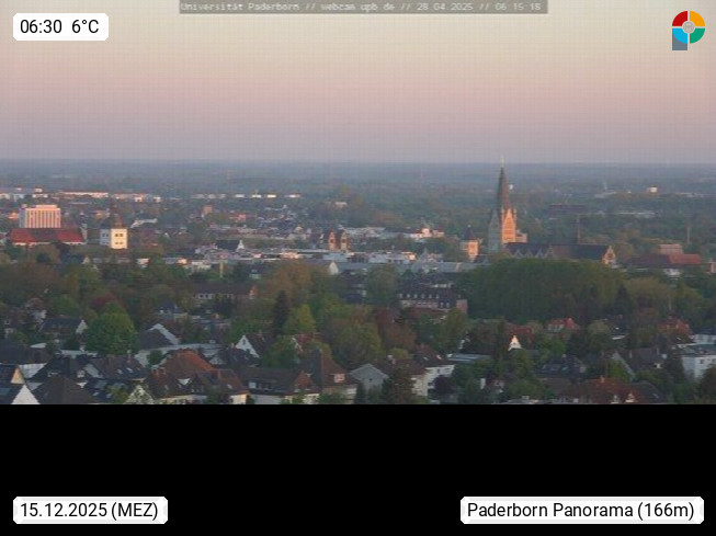 D 33098 Paderborn 110m, County seat and center of the region Hochstift Paderborn on the Pader river wich is with 4 km length the shortest river in Germany. Panoramic view from the roof of the university in west direction. Presented by https://www.uni-paderborn.de/.