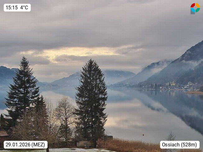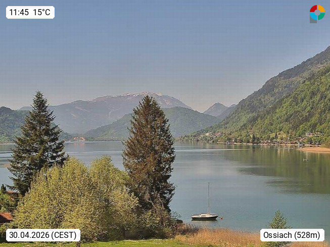 A 9560 Ossiach 510m, Community located on the south shore of Lake Ossiach. View in west direction over the lake to the village Annenheim and the Kanzelhoehe 1.489m. Presented by https://www.visitvillach.at/.