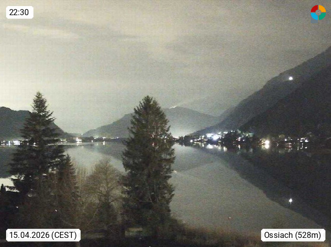 A 9560 Ossiach 510m, Community located on the south shore of Lake Ossiach. View in west direction over the lake to the village Annenheim and the Kanzelhoehe 1.489m. Presented by https://www.visitvillach.at/.