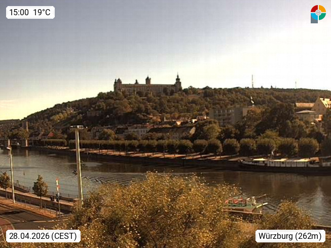 D 97070 Wuerzburg on Main 177m, oldest university town of Bavaria and seat of the administrative district of Lower Franconia. View towards southwest over the Main to the Fortress Marienberg. Presented by https://www.wuerzburg.de/index.html.