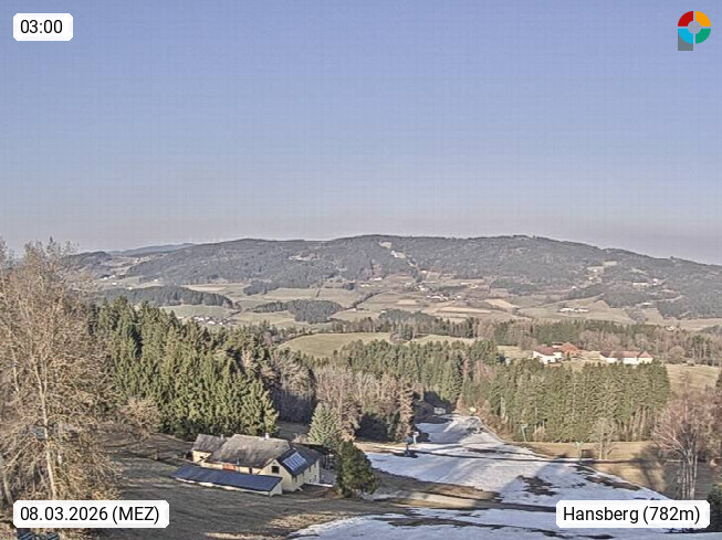 A 4172 Sankt Johann at Wimberg 720m, Municipality in the district of Rohrbach in Upper Muehlviertel. View in direction north over the ski piste from Mount Hansberg 850m, which is one of the beautiful look out points in the Muehlviertel region. Presented by https://www.hansberg.net/.