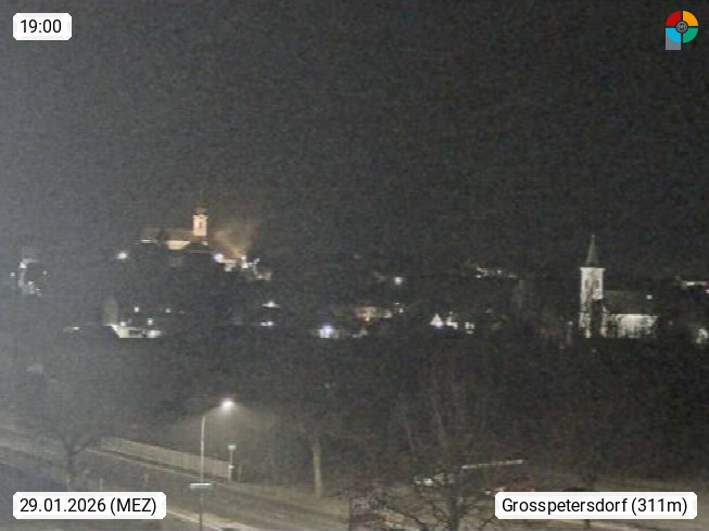 AT 7503 Grosspetersdorf 312 m, market town with 31.36 km² in the district of Oberwart in southern Burgenland, view from the Hotel Gip towards southwest over Grosspetersdorf to the parish church. Presented by https://www.hotelgip.at.