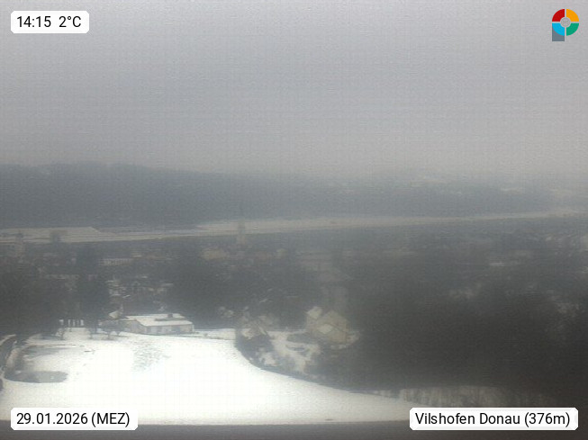 D 94474 Vilshofen on Danube 308m, panoramic view from the tower (50m) of the Benedictine monastery Schweiklberg in west direction over the town to the mouth of the river Vils into the Danube. Presented by https://www.schweiklberg.de/index.php/de/.