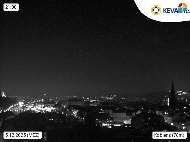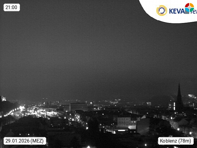 D 56068 Koblenz 60m, county-level city and one of the oldest cities in Germany at the mouth of the Moselle and Rhine in the so-called German Corner in northern Rheinland Pfalz. Panoramic view over the oldtown to the headland \"Deutsches Eck\" and the Fortress Ehrenbreitstein. Presented by https://www.sparkasse-koblenz.de/de/home.html.