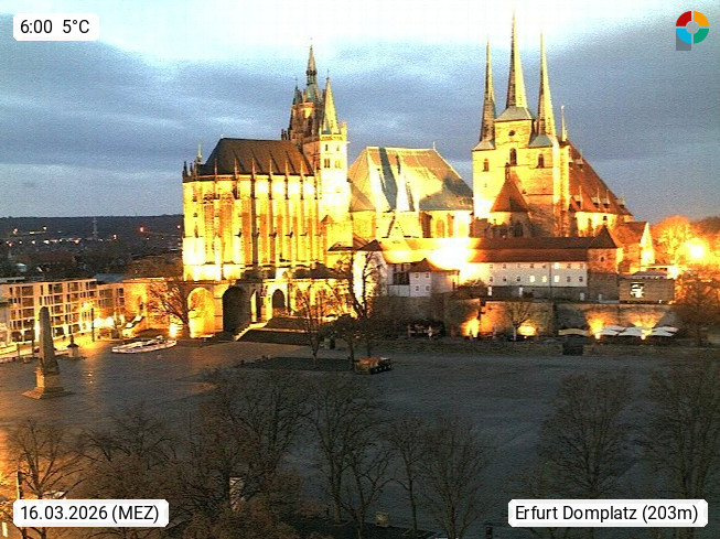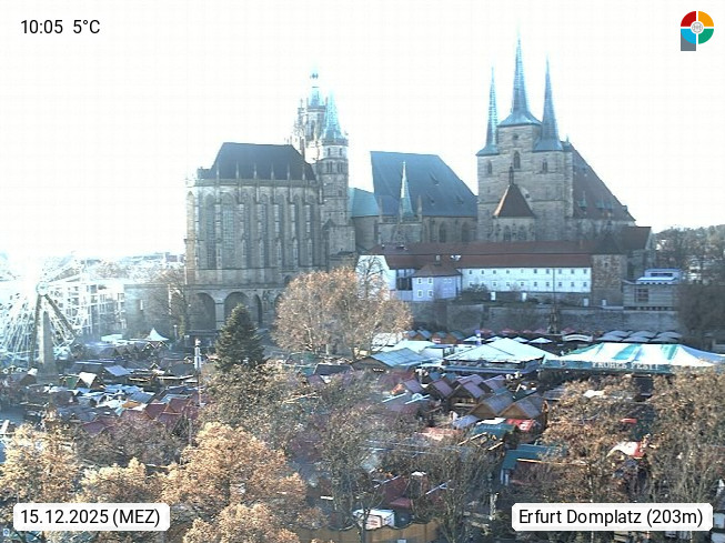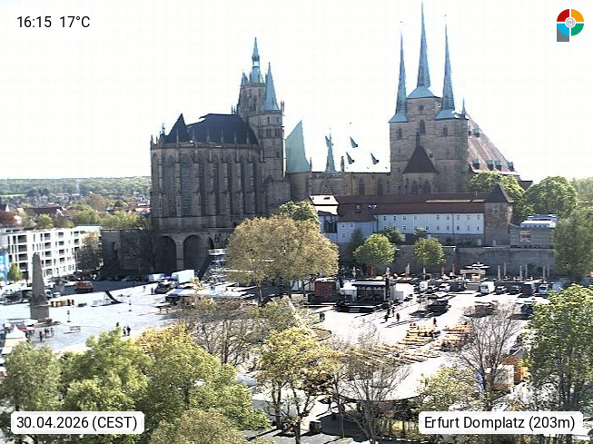 D 99084 Erfurt 195m, State capital of Thuringia on the southern edge of the Thuringian Basin in the wide valley of Gera. View onto teh Cathedral Square, where a lot of markets and events take place. Colloquial the square is also called \"Gradenmarkt\". Presented by https://www.erfurt.de/ef/de/index.html.