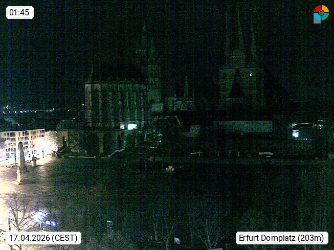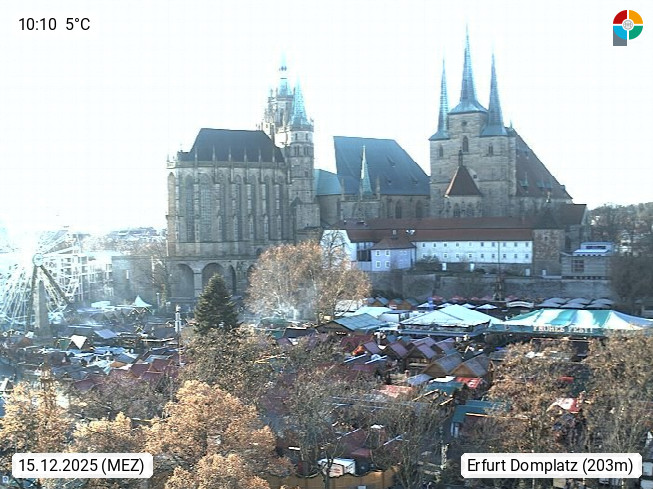 D 99084 Erfurt 195m, State capital of Thuringia on the southern edge of the Thuringian Basin in the wide valley of Gera. View onto teh Cathedral Square, where a lot of markets and events take place. Colloquial the square is also called \"Gradenmarkt\". Presented by https://www.erfurt.de/ef/de/index.html.