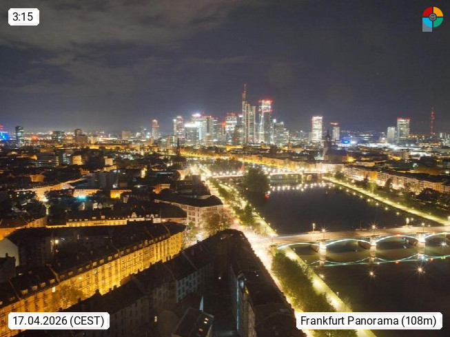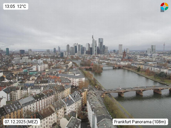 D 60327 Frankfurt on Main 112m, largest city in the German state Hesse and one of the richest cities in Europe as well as a metropole in the financial sector and literary and cultural field. The city lies on both sides of Main river southeast of Taunus mountains and is the birthplace of Johan Wolfgang von Goethe. Panoramic view from the roof of the gate lodge of the convention centre in south direction to the office buildings of the bank metropolis Frankfurt on Main. Presented by https://www.bergfex.de/.