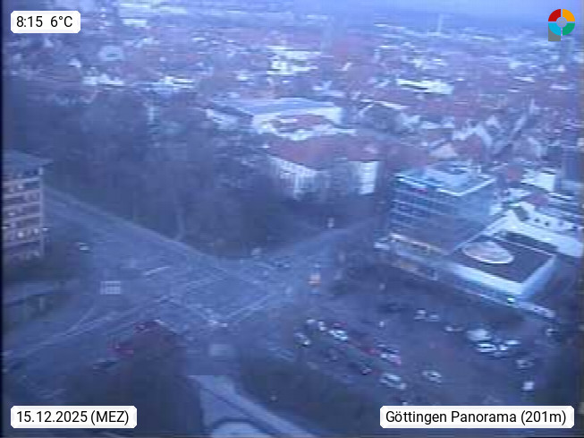 D 37083 Goettingen Goettingen 150m, University town in Lower Saxony, on the edge of the Goettingen forest. Panoramic view from the new town hall over the crossing \"Geismar Tor\". In the background is in the Sankt Jojannis and Sankt Jacobi Church. Presented by https://www.goecam.de/.
