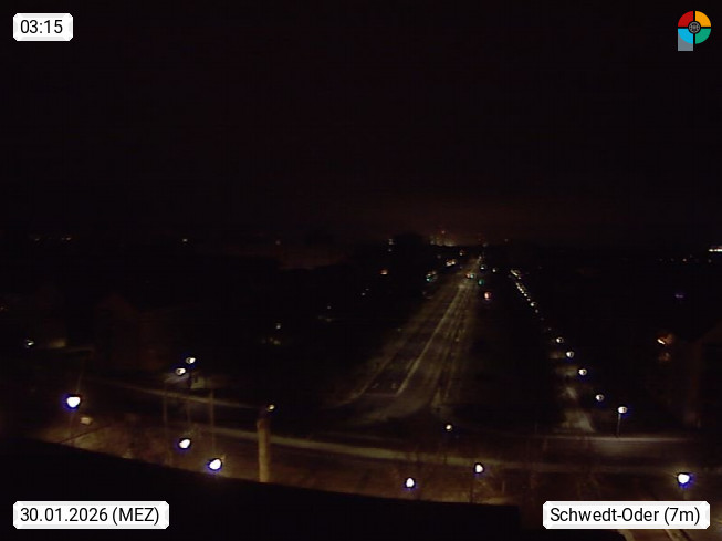 D 16303 Schwedt an der Oder 8m, Town in the district Uckermark. Panoramic view from the House of the Uckermaerkischen Buehnen in north direction over the Lindenallee avenue to the Berlin Street. Presented by http://www.theater-schwedt.de.