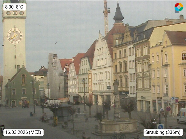 D 94315 Straubing on Danube 331m, county-level city and administrative center of the planning region Donauwald. View over the Place Louis to the city Tower of Straubing. Presented by https://www.idowa.de/.