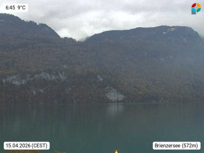 CH 3855 Brienz 566m, panoramic view from the Lake Promenade in south direction over Lake Brienz. Presented by http://www.webcam-brienzersee.com.