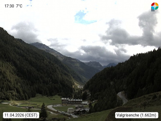 I 11010 Valgrisenche 1.664m, panoramic view in north direction over the high plateau to the dam of the storage lake Lago di Beauregard. Presented by http://www.regione.vda.it.
