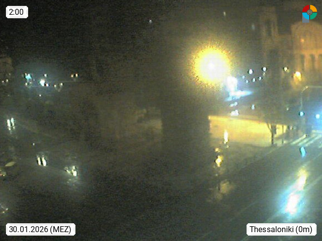 GR 54642 Thessaloniki (Salonika), second largest city of Greece and capital of the administrative region Central Macedonia at the foothills of the Chortiatis Mountains 1.200m at the Thermaic Gulf. Panoramic view to the triumphal arch of Galerius in the city centre. PROMOTED BY http://www.panocams.gr. Presented by https://www.iama.gr/.