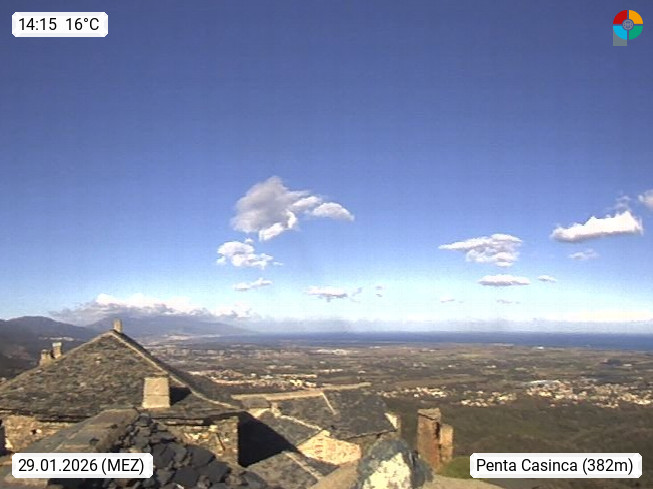 F 20213 Penta di Casinca 400m, Mountainvillage in the canton Vescovato and department of Haute Corse. Panoramic view in direction north to Cap Corse. Presented by https://meteopenta.pagesperso-orange.fr/.