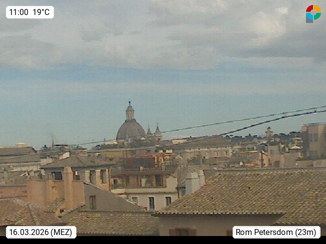 I 00185 Rome (Roma) 37m, largest city of Italy in region Lazio at the banks of the river Tiber. The Eternal City called metropole is the administrative seat of region Lazio and the province Rome. Panoramic view in west direction over the roofs of the city to St. Peters Basilica in Vaticano. Presented by https://www.barcello.it.