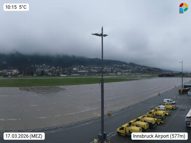 A 6020 Innsbruck Kranebitten 579m, panoramic view in northwest direction over the apron of the airport, which is located around 4 km away from the city centre in the Hoettinger riparian forest. Presented by https://www.innsbruck-airport.com/.