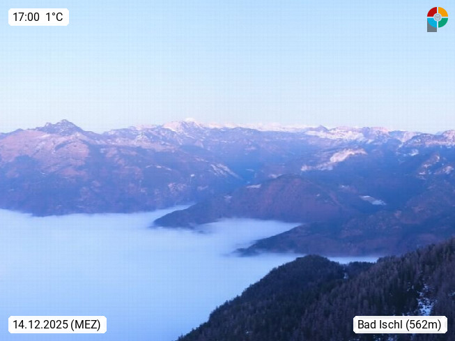 A 4820 Bad Ischl 468m, health resort in the centre of the region Salzkammergut at the river Traun in the south of Upper Austria. Panoramic view from the mountain station of Katrinseilbahn cable cars 1.418m in north direction over the Emperor Town Bad Ischl. On the left Mount Hoellkogel 1.862m, in the middle Mount Traunstein 1.691m and Lake Traunsee, on the right Mount Hohe Schrott 1.839m. Presented by https://badischl.salzkammergut.at.