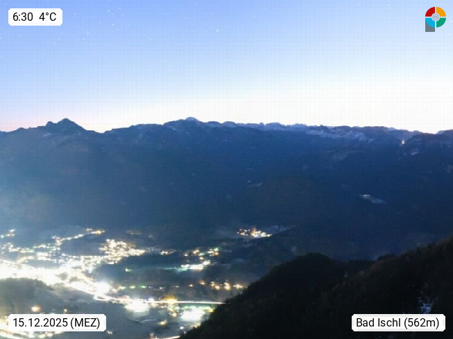 A 4820 Bad Ischl 468m, health resort in the centre of the region Salzkammergut at the river Traun in the south of Upper Austria. Panoramic view from the mountain station of Katrinseilbahn cable cars 1.418m in north direction over the Emperor Town Bad Ischl. On the left Mount Hoellkogel 1.862m, in the middle Mount Traunstein 1.691m and Lake Traunsee, on the right Mount Hohe Schrott 1.839m. Presented by https://badischl.salzkammergut.at.