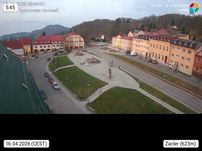 CZ 54201 Zacler (Schatzlar) 614m, small town in the district Trutnov in the region Rehorngebirge in the north of the Czech Republic at the border to Poland. Panoramic view over the main square in the town centre. PROMOTED BY http://www.panocams.cz. Presented by http://www.humlak.cz/index.php.