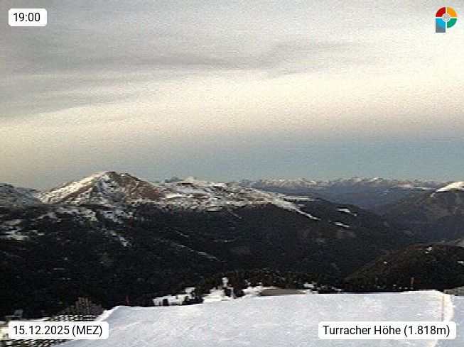 9565 Predlitz Turrach, skiing and hiking area Turracher Hoehe in the Gurktaler Alps and Nockberg mountains at the border to Carinthia. Panoramic view in east direction. Presented by https://www.turracherhoehe.at/de.