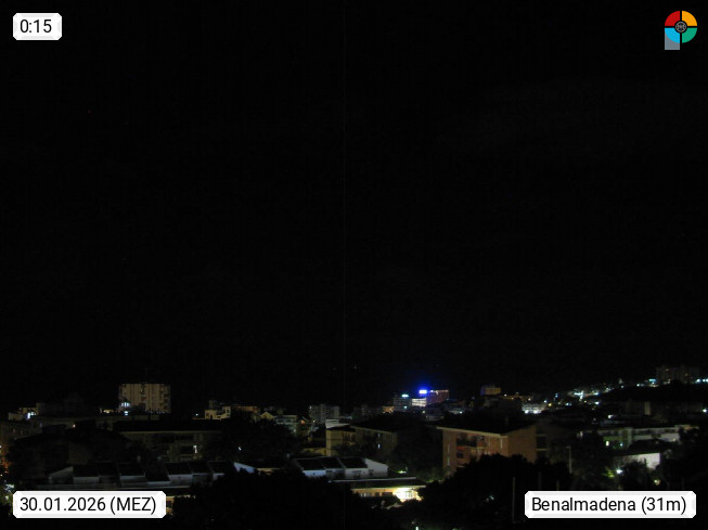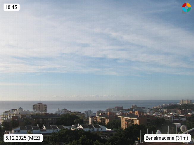 E 29630 Benalmadena, town in the Spanish region Andalusia and autonomous municipality in the province Malaga at the Costa del Sol coast in the south of the Iberian Peninsula around 30 km south of Malaga. Panoramic view over the the town in southwest direction over the Sea of Alboran in the western Mediterranean Sea in front of the Strait of Gibraltar. If there is bright weather you can see the mountain range Er Rif (Dschebel er Rif) in the Atlas Mountains of Morocco and the camel hump rock of Ceuta at Africa. Presented by https://www.meteobenalmadena.com.