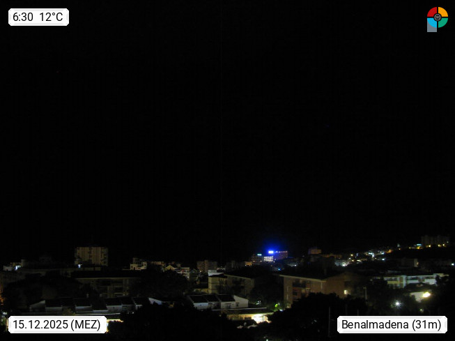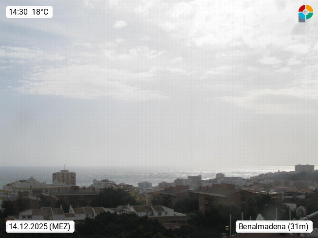 E 29630 Benalmadena, town in the Spanish region Andalusia and autonomous municipality in the province Malaga at the Costa del Sol coast in the south of the Iberian Peninsula around 30 km south of Malaga. Panoramic view over the the town in southwest direction over the Sea of Alboran in the western Mediterranean Sea in front of the Strait of Gibraltar. If there is bright weather you can see the mountain range Er Rif (Dschebel er Rif) in the Atlas Mountains of Morocco and the camel hump rock of Ceuta at Africa. Presented by https://www.meteobenalmadena.com.