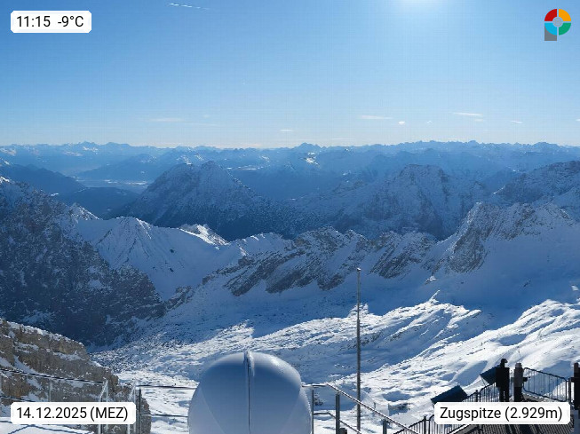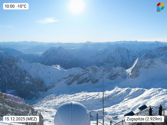 A 6632 Ehrwald in district Reutte at Ausserfern, panoramaview from the Tyrol side of the Zugspitze 2.962 meters in southwest direction to the Schneefernerkopf 2.874 meters and the Zugspitzplatt with the glacier skilifts. After 10 minutes ride time from the valley station Ehrwald Obermoos to the mountainstation 2.950 meters you can enyoy a breathtaking mountainpanorama from the viewpointplatform. Presented by https://www.zugspitze.at/de/home/.