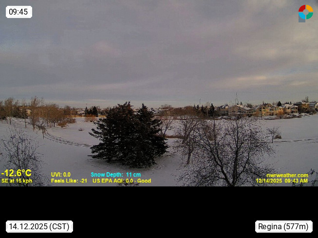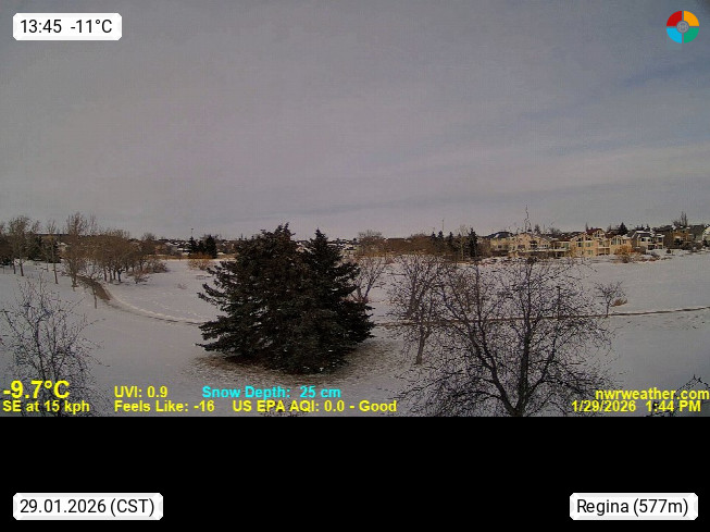Regina 585m, capital of the canadian province Saskatchewan. View in the Wascana Centre Park 9,3 km² in the citycentre, which is ranging over Wascana Lake in west direction to the Capitol. Presented by http://www.nwrweather.com.