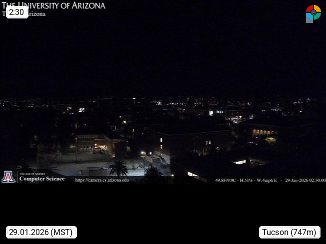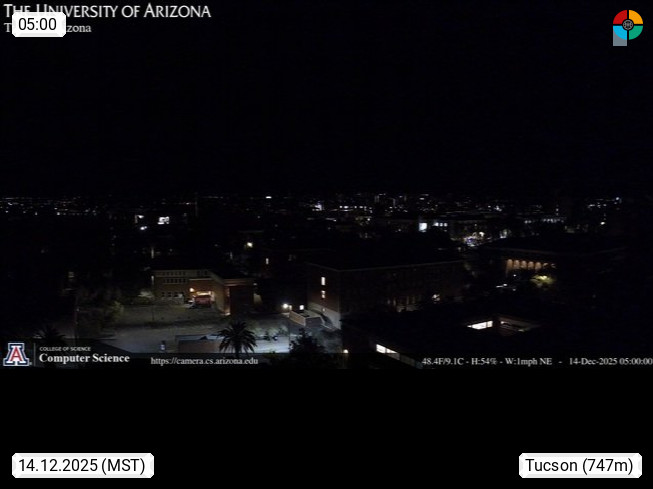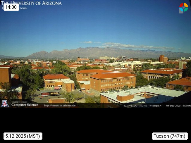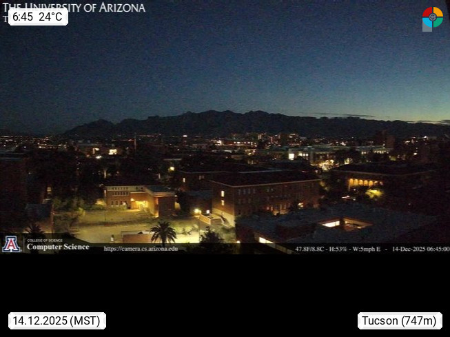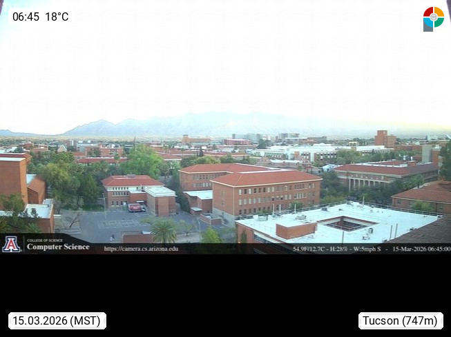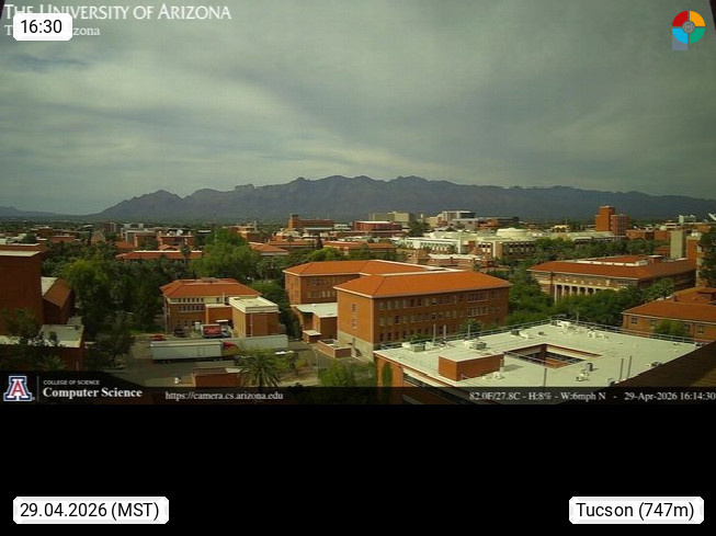 Tucson 728m, town with administrationdomicile in Pima County in Arizona. Tucson is the biggest town in South Arizona. View from Arizona University in north direction over the town to the Santa Catalin Mountains. Presented by https://www.cs.arizona.edu/.