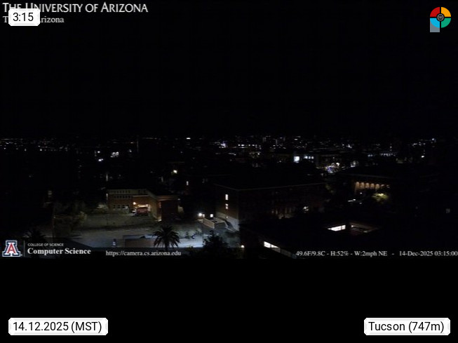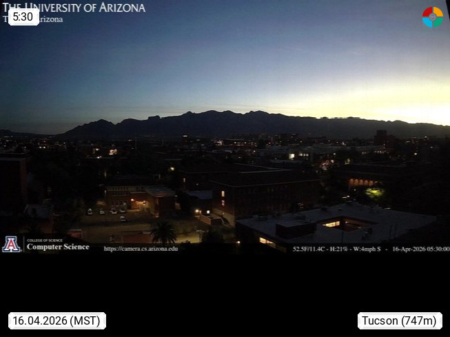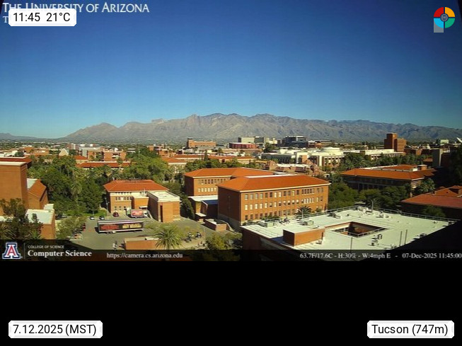Tucson 728m, town with administrationdomicile in Pima County in Arizona. Tucson is the biggest town in South Arizona. View from Arizona University in north direction over the town to the Santa Catalin Mountains. Presented by https://www.cs.arizona.edu/.