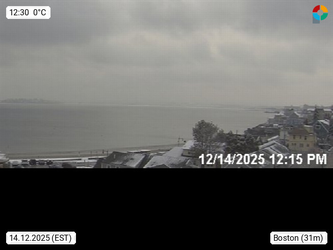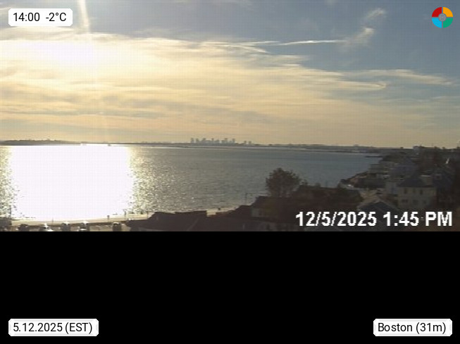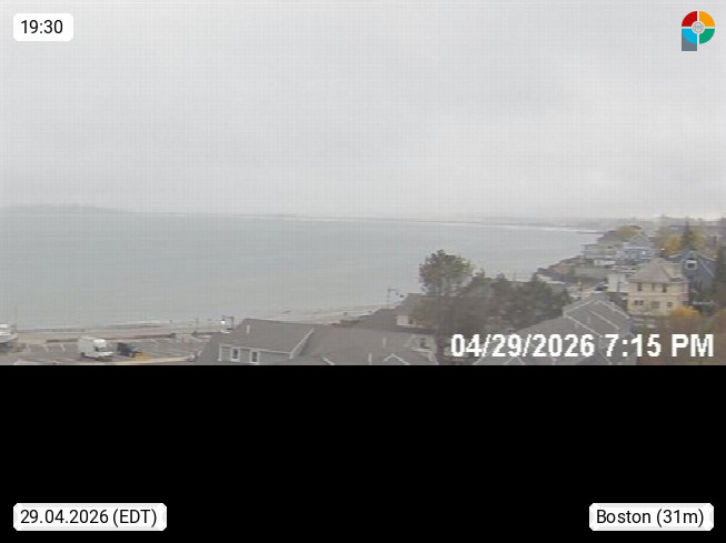 Boston 49m, capital of the federalstate Massachusetts on the eastcoast of the United States and one of the oldest, rich and most cultural town of the USA. Panoramaview in south direction over the bay, where the Charles River flows into the Atlantic Sea. In the background you can see the Skyline of the town. Presented by https://hazecam.net/.