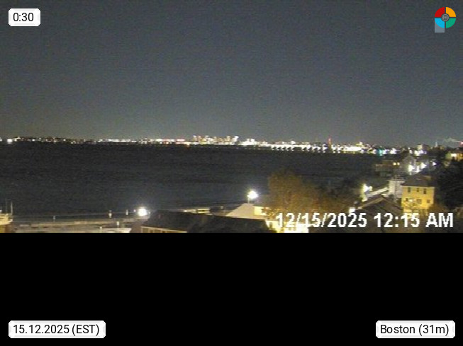 Boston 49m, capital of the federalstate Massachusetts on the eastcoast of the United States and one of the oldest, rich and most cultural town of the USA. Panoramaview in south direction over the bay, where the Charles River flows into the Atlantic Sea. In the background you can see the Skyline of the town. Presented by https://hazecam.net/.