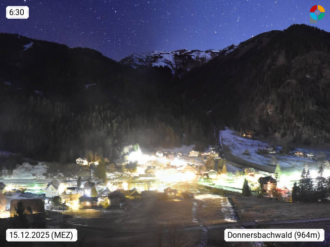 A 8953 Irdning-Donnersbachtal village Donnersbach 960m, in the Lower Tauern in canton Liezen. View in northwest direction over the drawnout basin of the Donnersbachvalley. Presented by https://www.riesneralm.at/.