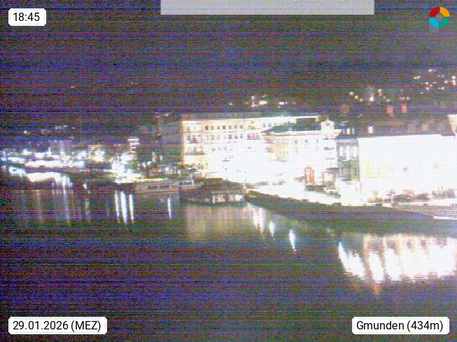 A 4810 Gmunden 425m, district capital on the northcoast of Traunsee in Salzkammergut. View from the hithe over the town hall square and Espalande in the citycenter in west direction to the Gmundnerberg 850m. Presented by https://www.reingruber.at.