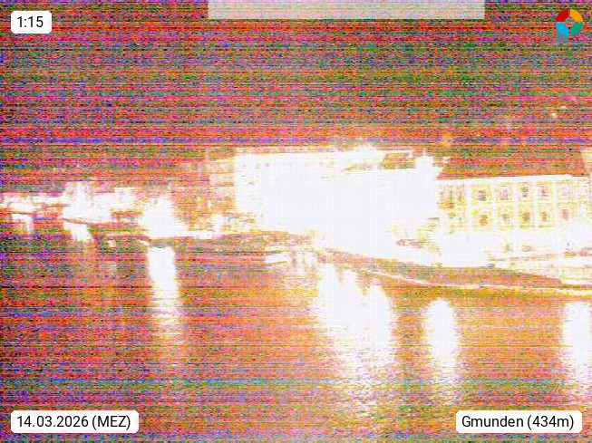 A 4810 Gmunden 425m, district capital on the northcoast of Traunsee in Salzkammergut. View from the hithe over the town hall square and Espalande in the citycenter in west direction to the Gmundnerberg 850m. Presented by https://www.reingruber.at.