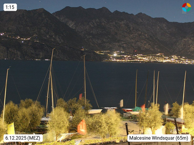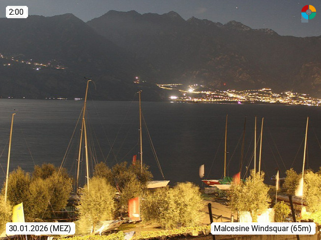 I 37018 Malcesine 63m, at the eastern shore of Lake Garda in the Province Verona in region Veneto. View from the Watersportcenter WWWIND SQUARE on the famous ventospot on the eastcoast of Lake Garda in west direction over the lake. Presented by https://www.wwwind.com/.