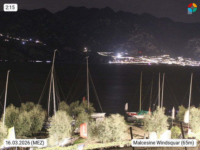 I 37018 Malcesine 63m, at the eastern shore of Lake Garda in the Province Verona in region Veneto. View from the Watersportcenter WWWIND SQUARE on the famous ventospot on the eastcoast of Lake Garda in west direction over the lake. Presented by https://www.wwwind.com/.